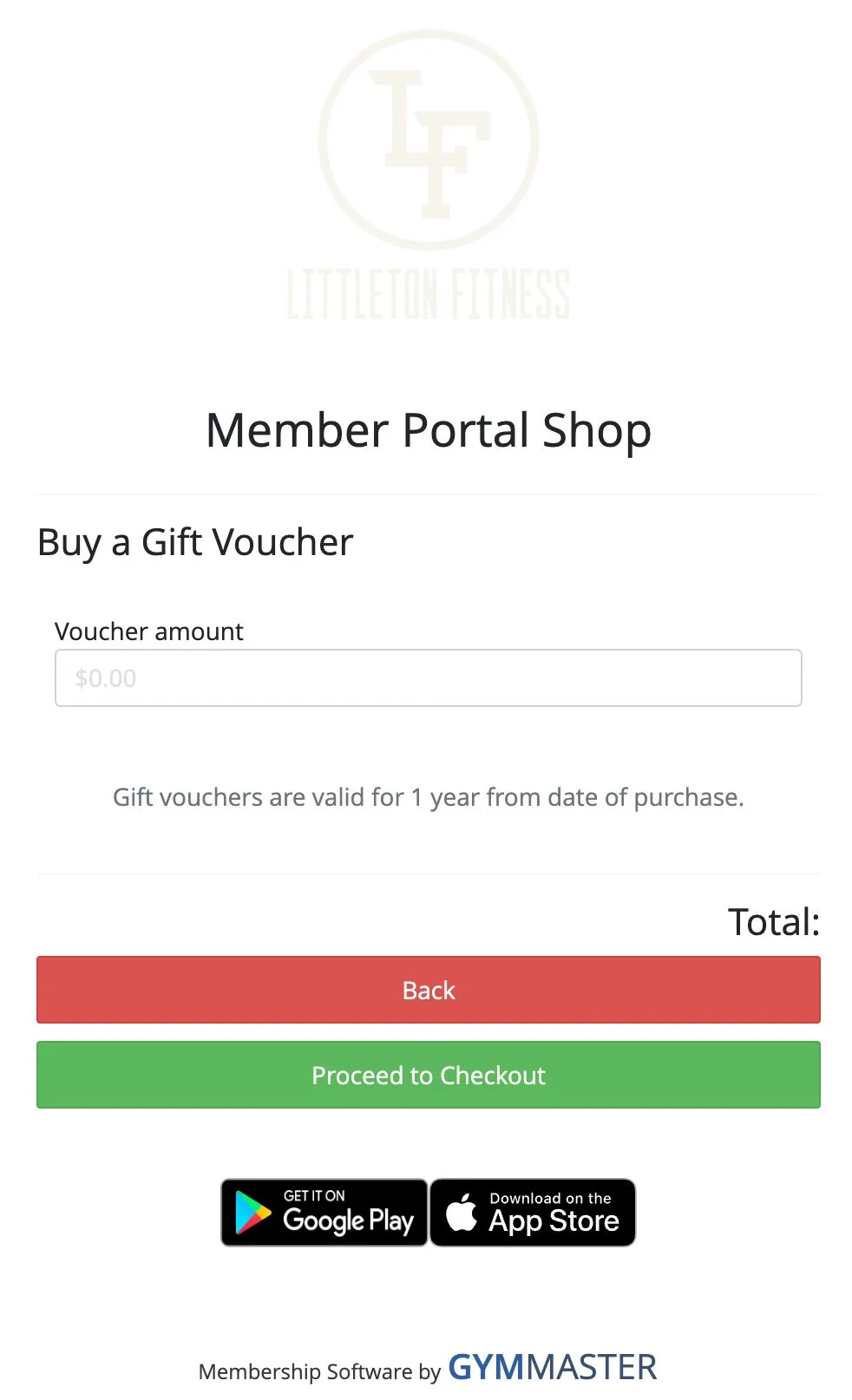 Troubleshooting Tip: If you do not see the voucher option or cannot access the page, make sure you are not logged in to Gymmaster through your browser. Try logging out and trying again!