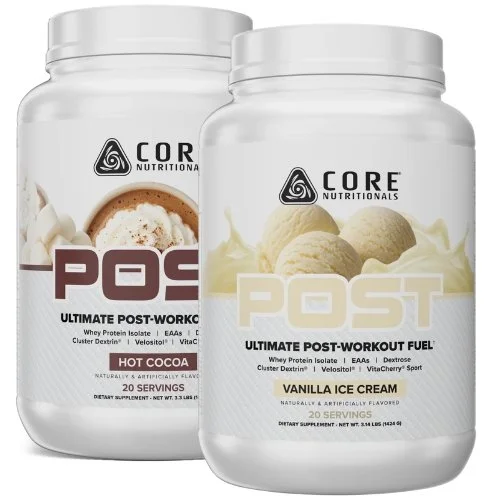 Post-workout nutrition is crucial for fitness and physique goals. It supports anabolic functions by maximizing glycogen storage and protein synthesis while minimizing protein breakdown and excessive catabolic hormone release. The ideal approach is less complex than many claim: clinical studies show high-quality, fast-digesting carbohydrates and protein create optimal crucial conditions for growth. Core POST follows this model, combining fast-acting proteins and carbs—whey isolate, dextrose, and Cluster Dextrin—with additional anabolic agents, including free-form L-Leucine, Velositol, VitaCherry, and Bioperine to enhance absorption. Together, these ingredients quickly replenish muscle glycogen and deliver essential amino acids to muscle cells, helping maximize recovery after weight training. Whether you are bulking up or slimming down, this comprehensive blend targets effective post-workout recovery and supports consistent progress.
